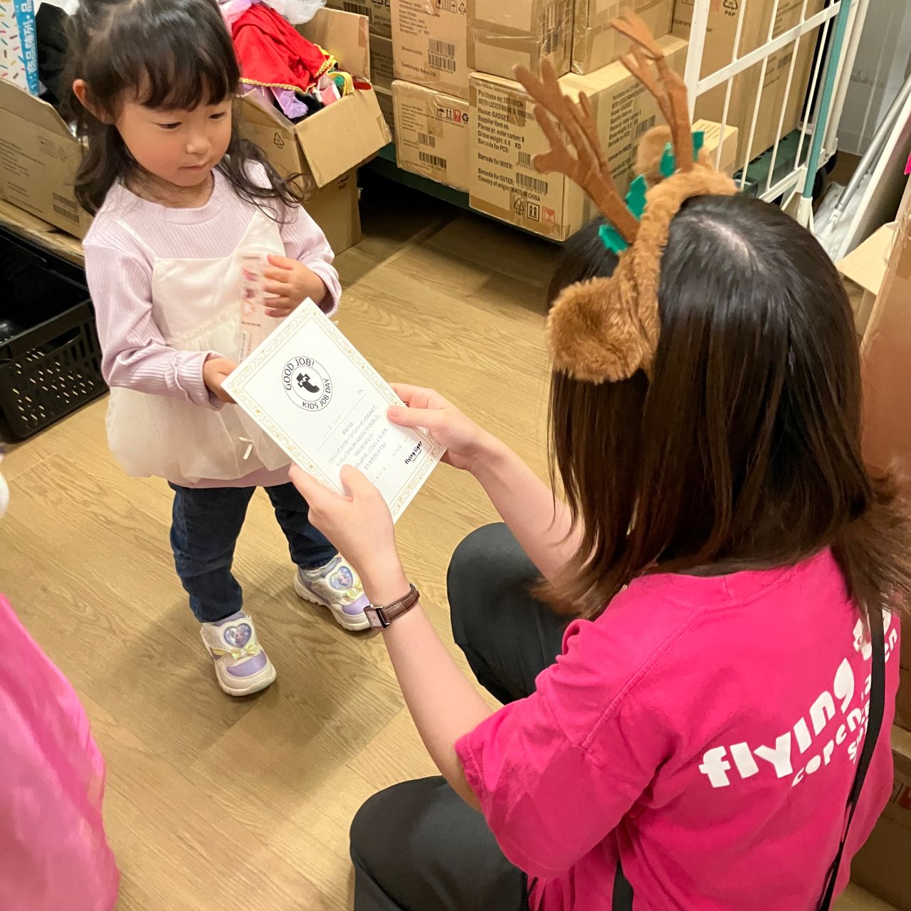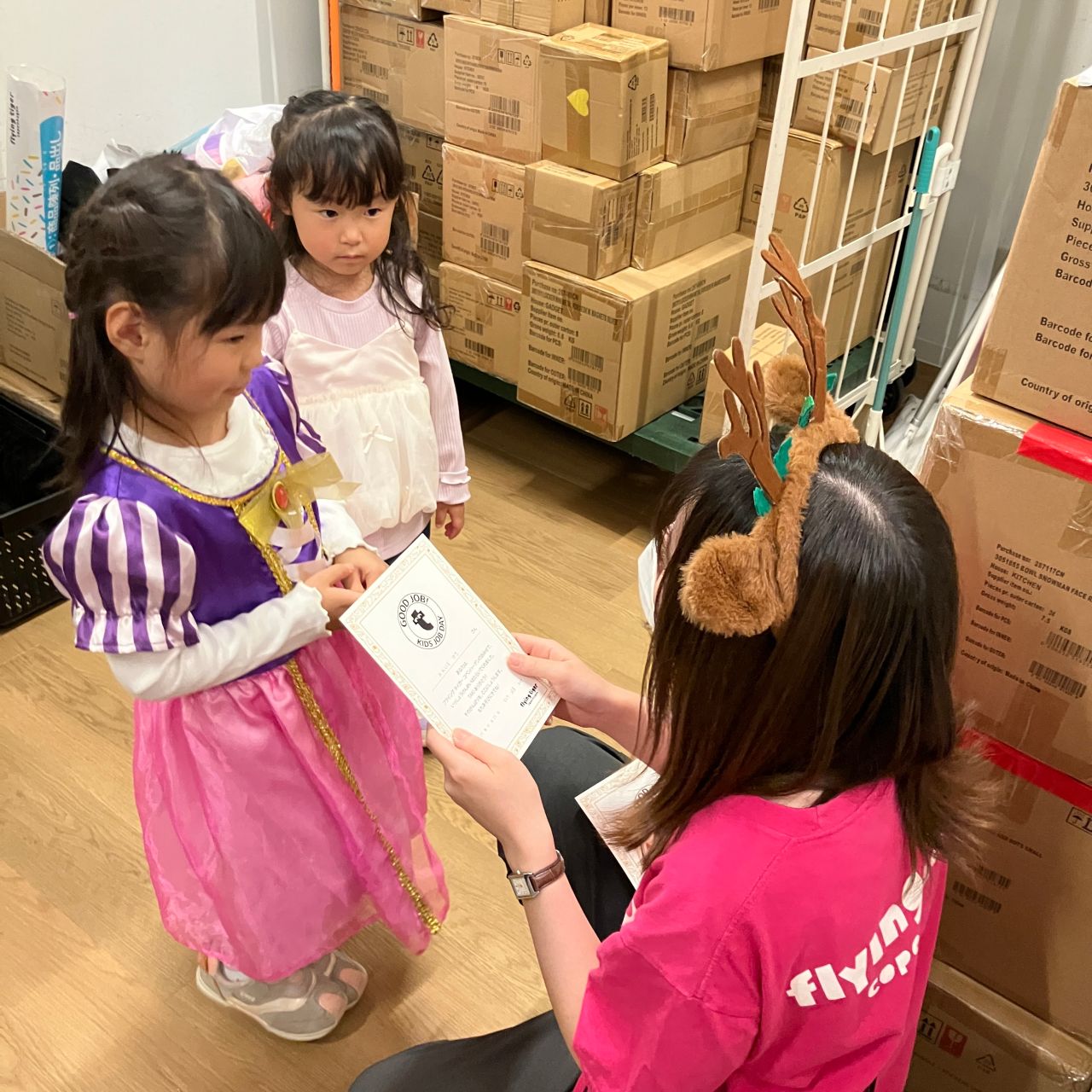 最後に、賞状とお給料(お買い物チケット)をお渡しして