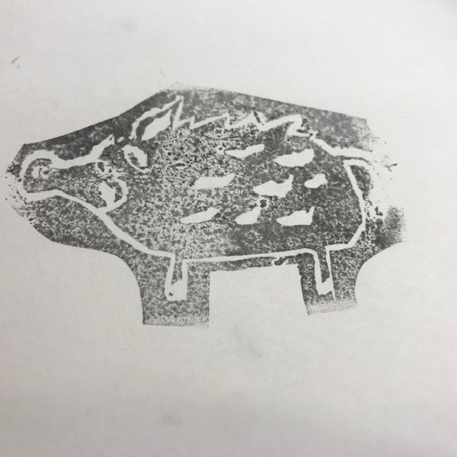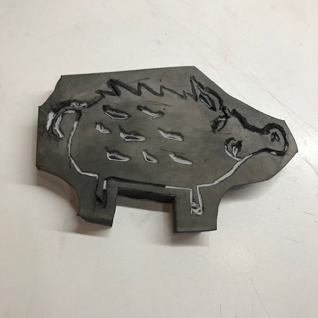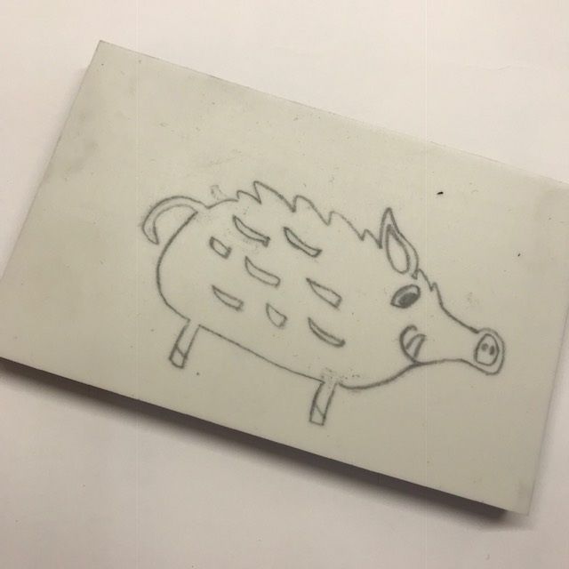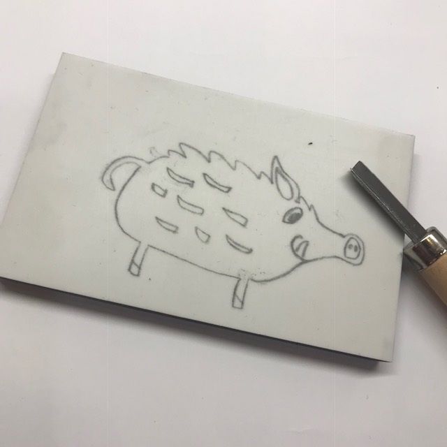 すると、ゴムの板に逆さまになったイラストが転写されます!