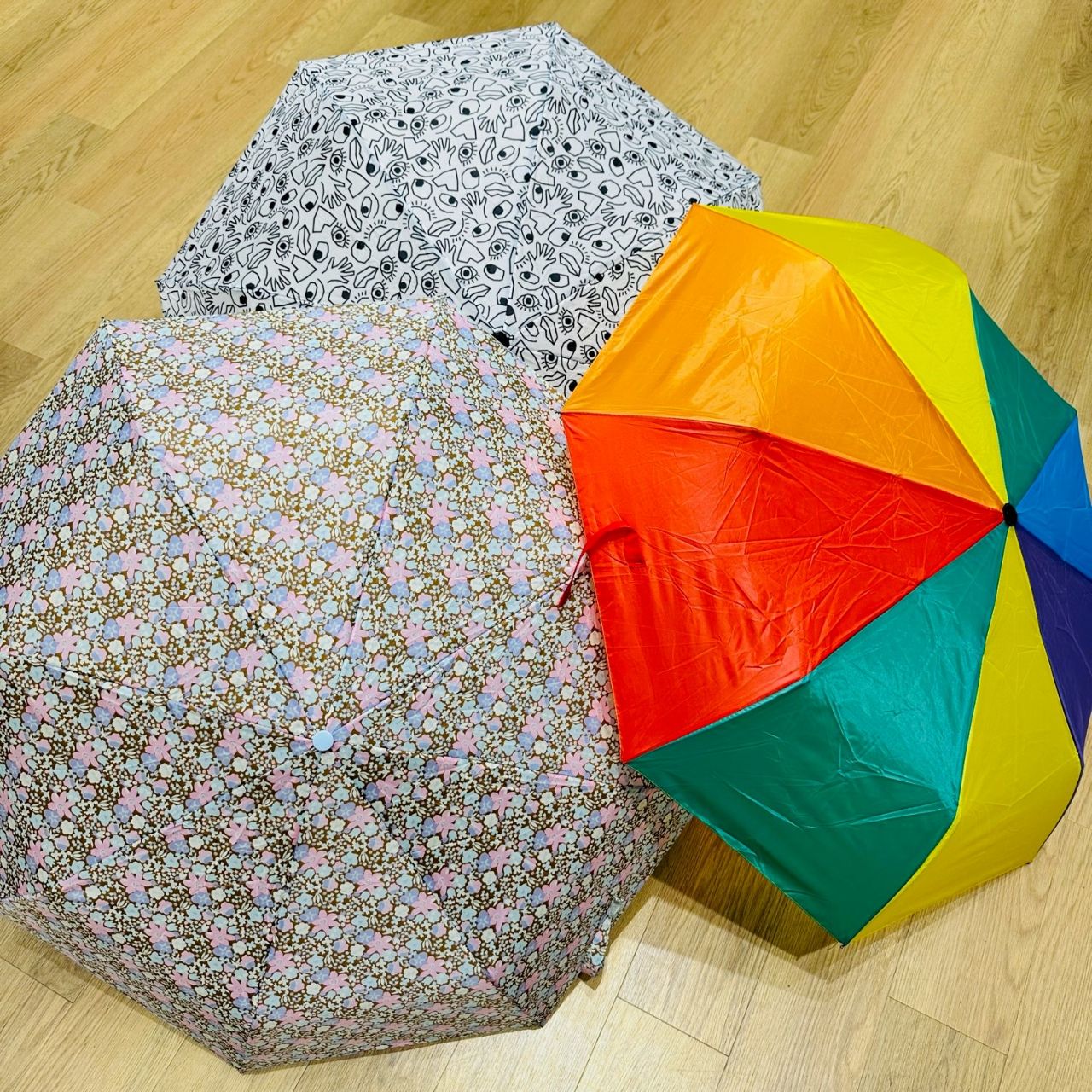 折り畳み傘(レインボー・花柄)各850円(税込935円)