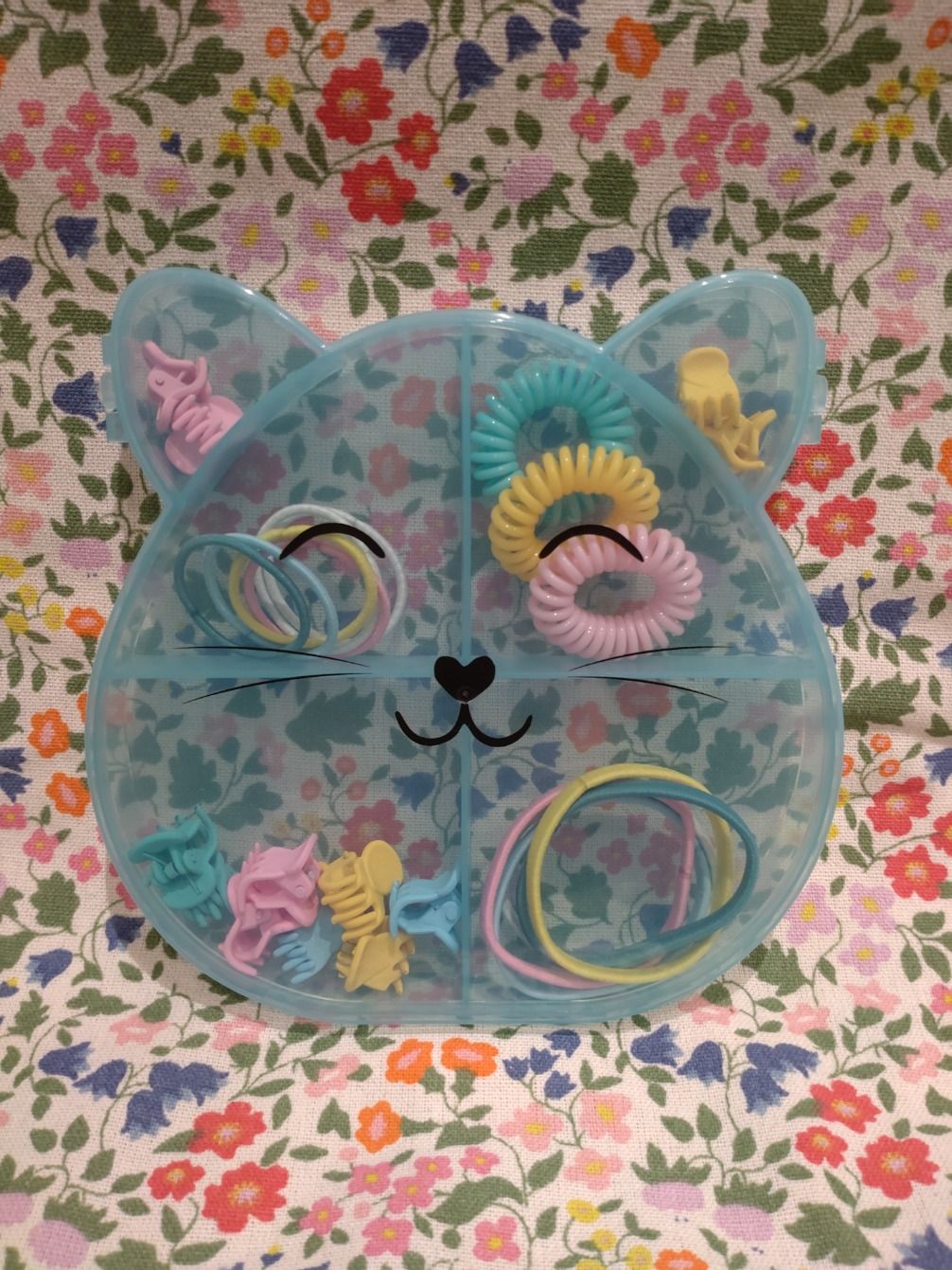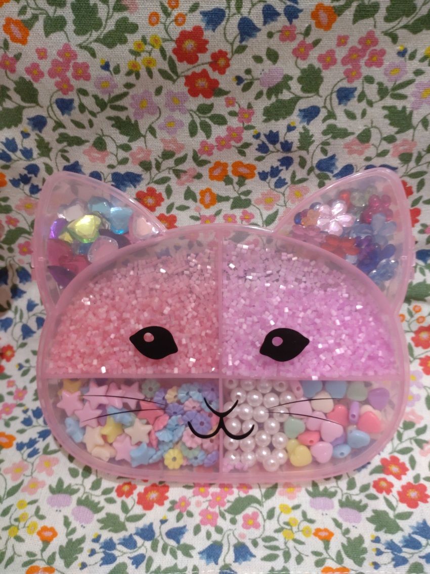 仕切りがしっかりしているのでヘアゴム以外でもビーズや宝石シールを収納したら