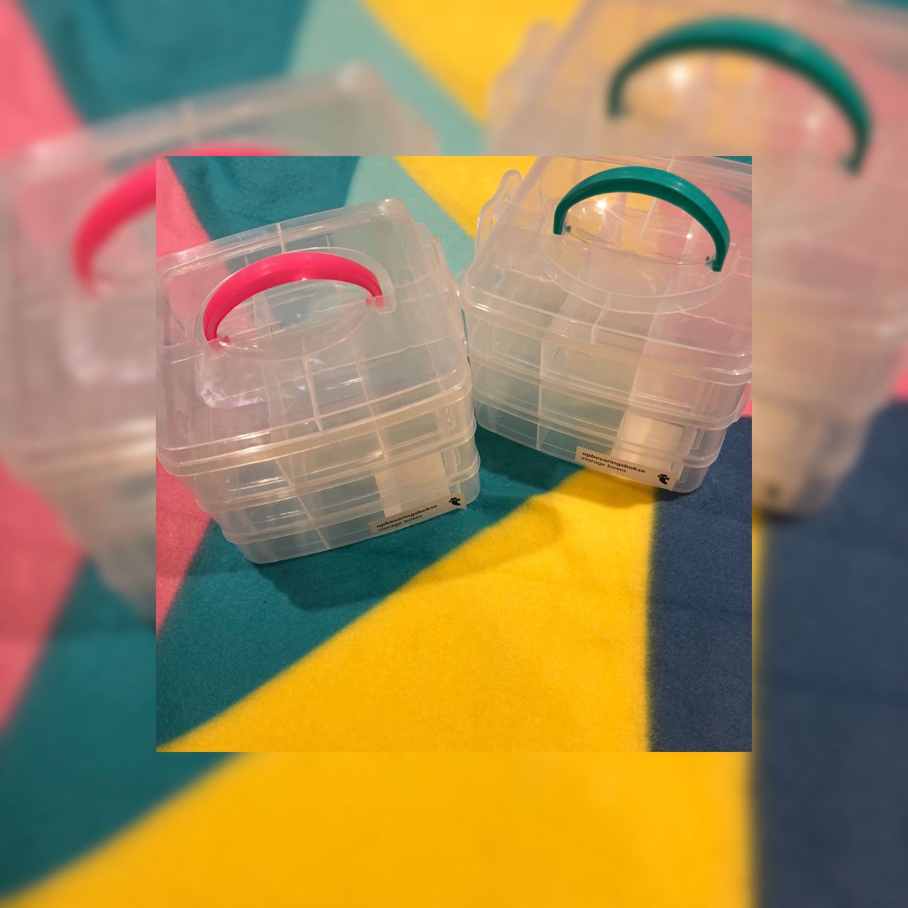 ☝︎こちらも今回の新商品!1番小さいタイプです。虹色カラーで色によって、違うものを入れたり、朝は青、昼は緑、夜は赤と薬を朝昼晩色で分けて入れたら分かりやすいですよね!!
