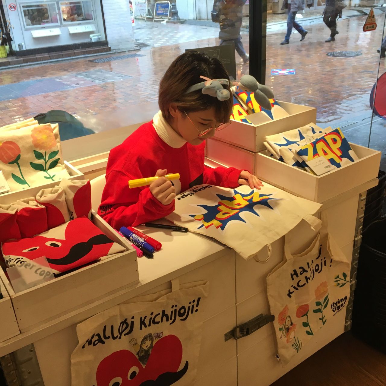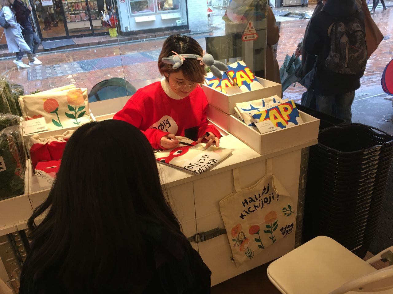 どんなイベントかというと、吉祥寺ストアのリミテッドバッグをご購入していただいたお客様に、バッグに似顔絵をお描きするというイベントです☺♡♡
