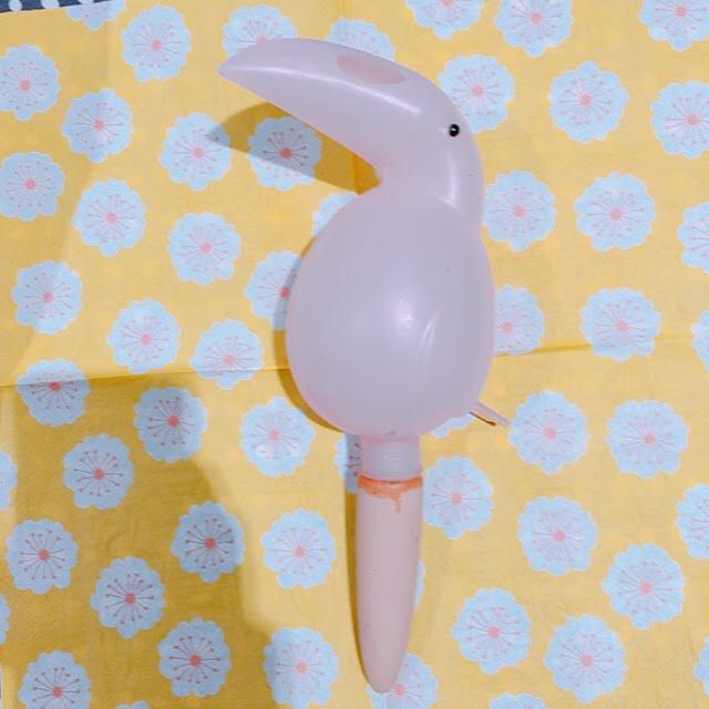 この鳥(??)の中に水を入れると、下のスティックの部分から徐々に水がしみ出してきます