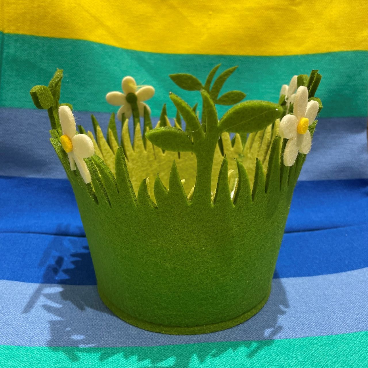 こちらは、チューリップがデザインされたフェルトバスケットです!