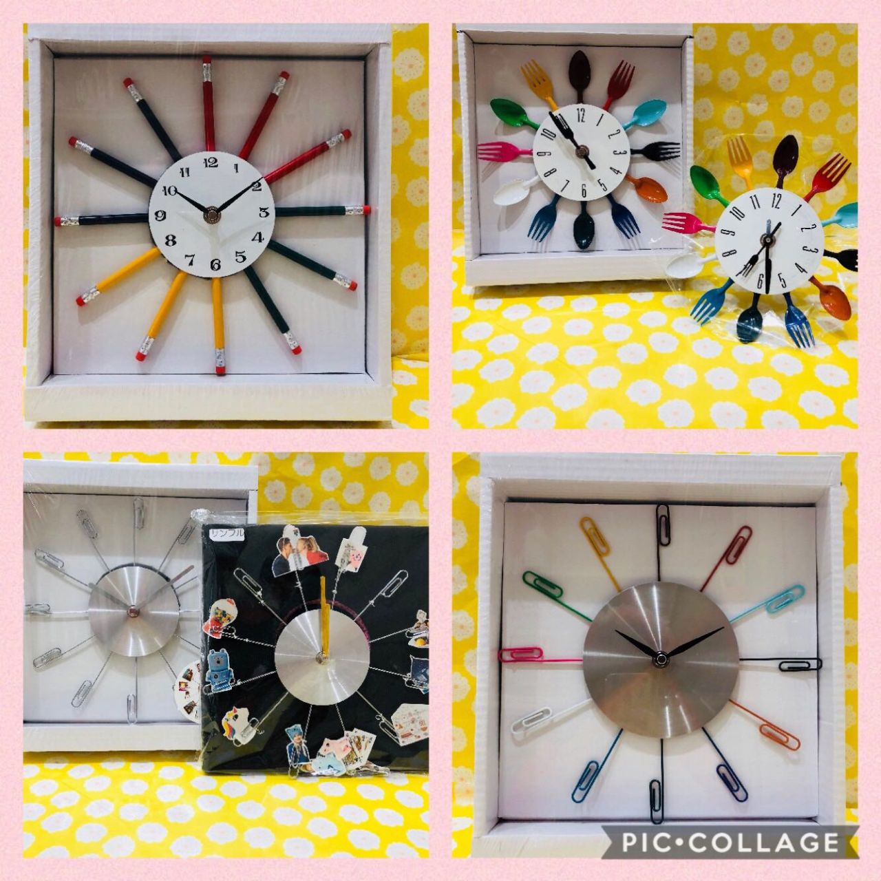 右上の時計のみスタンド時計で、他3つは掛け時計です。