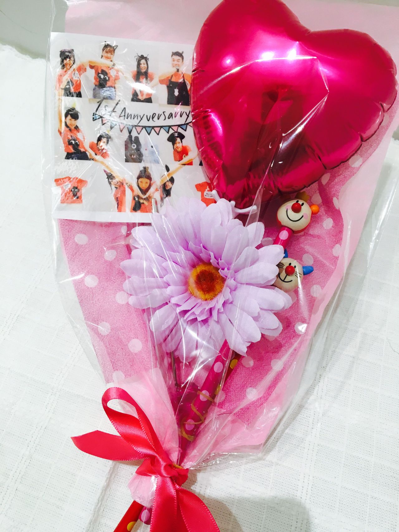 風船、写真、キャンディなどお好きなものを包んでブーケのような形にするだけでできあがりです!!