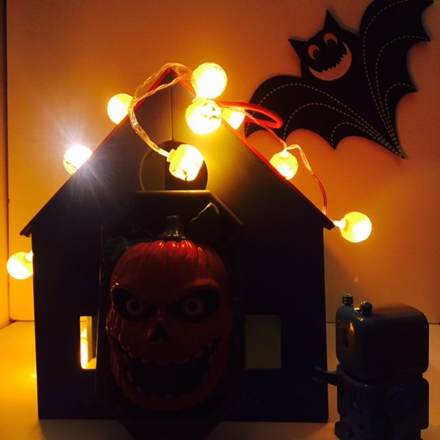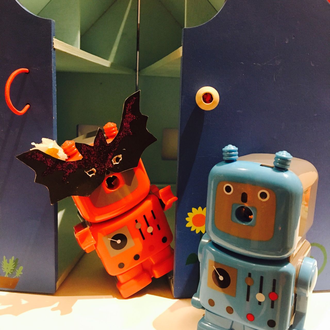 一足お先にハロウィンを楽しんでいるロボット君。