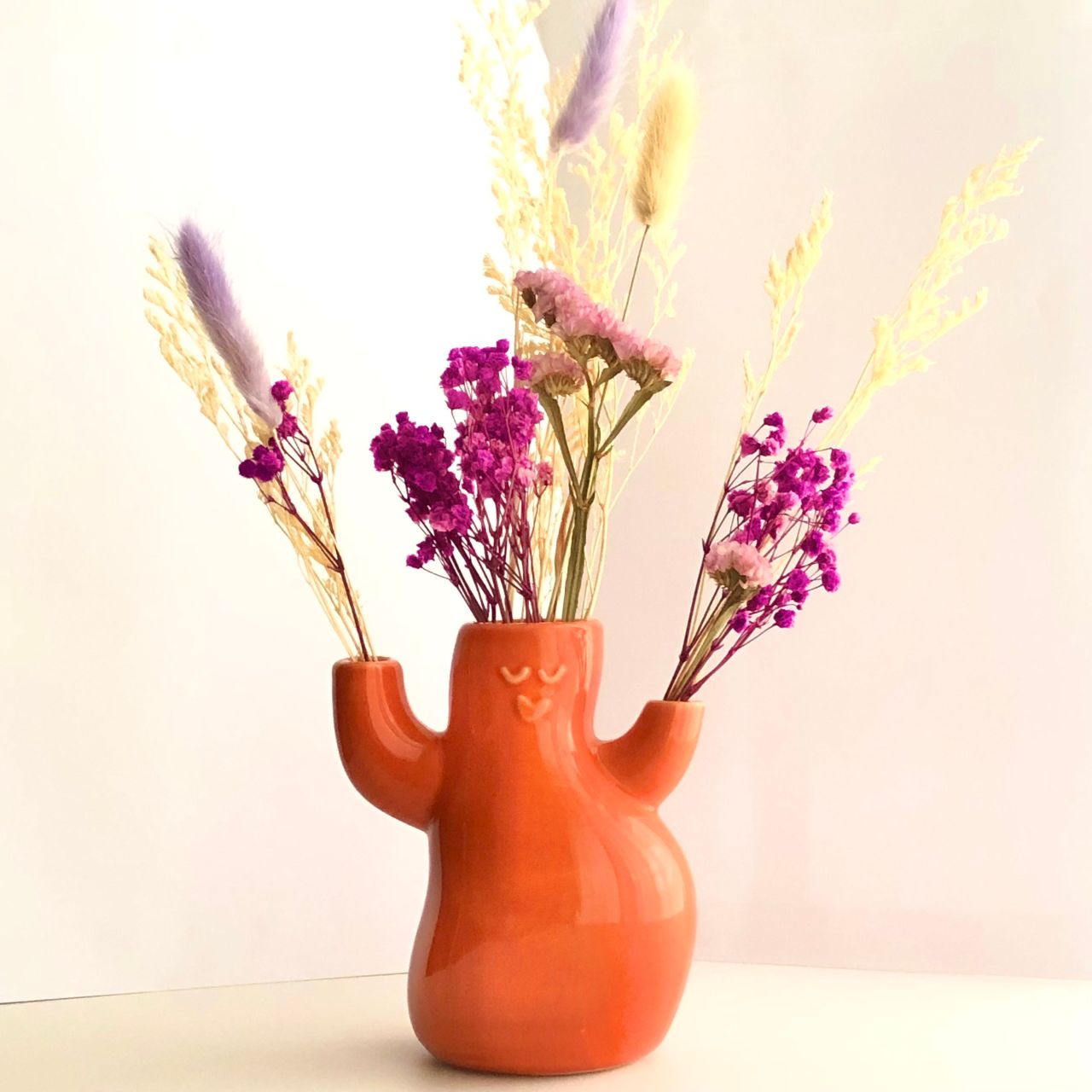 ほのぼのしていてチャーミングなフラワーベースと、ちょっと大人の雰囲気も醸し出すドライフラワーの最強タッグで、一目惚れする組み合わせが誕生しました!!