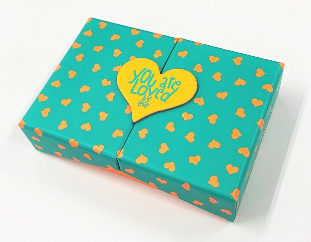 モチーフの間にリボンを通して、そのまま箱に貼り付けちゃいます。