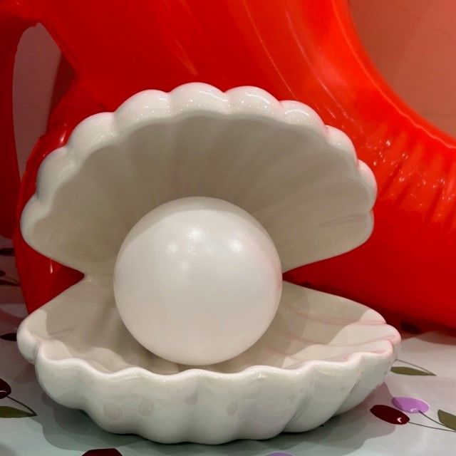 陶器でできた、真っ白な貝殻がかわいいランプ。