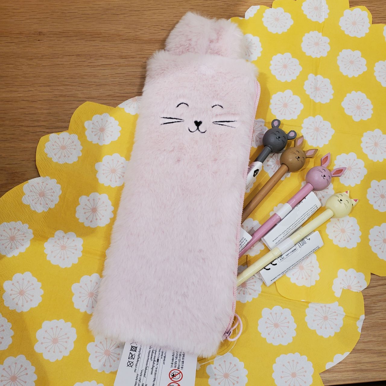 フワフワで耳が付いた形が可愛いウサギのペンケース♡