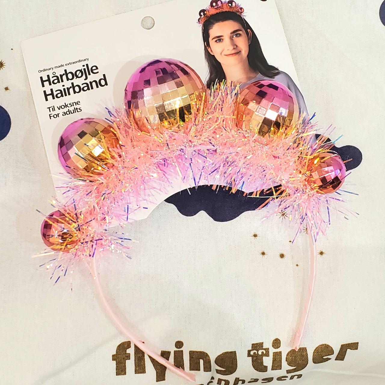 ピンクのミラーボールが付いた可愛らしいカチューシャで