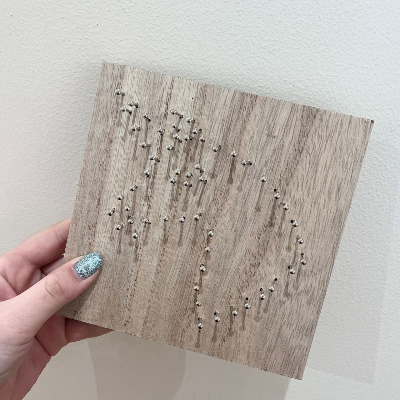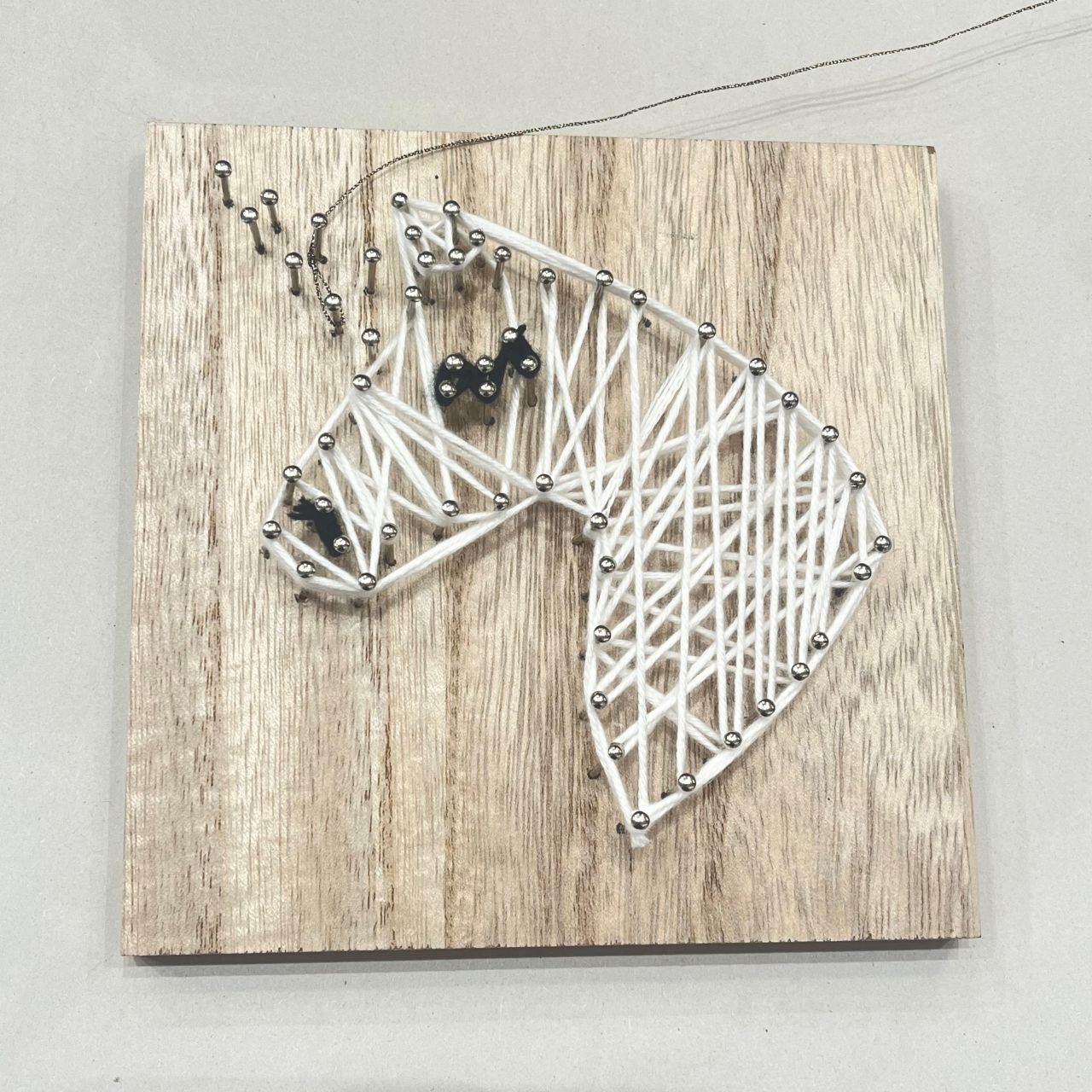 ストリングアートとは、木の板に釘を打ち、釘の間に糸を掛けて