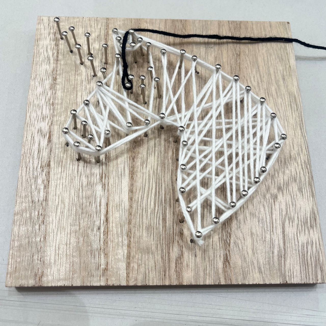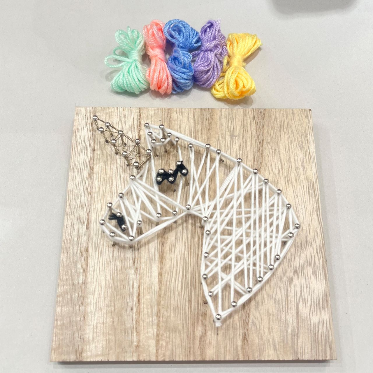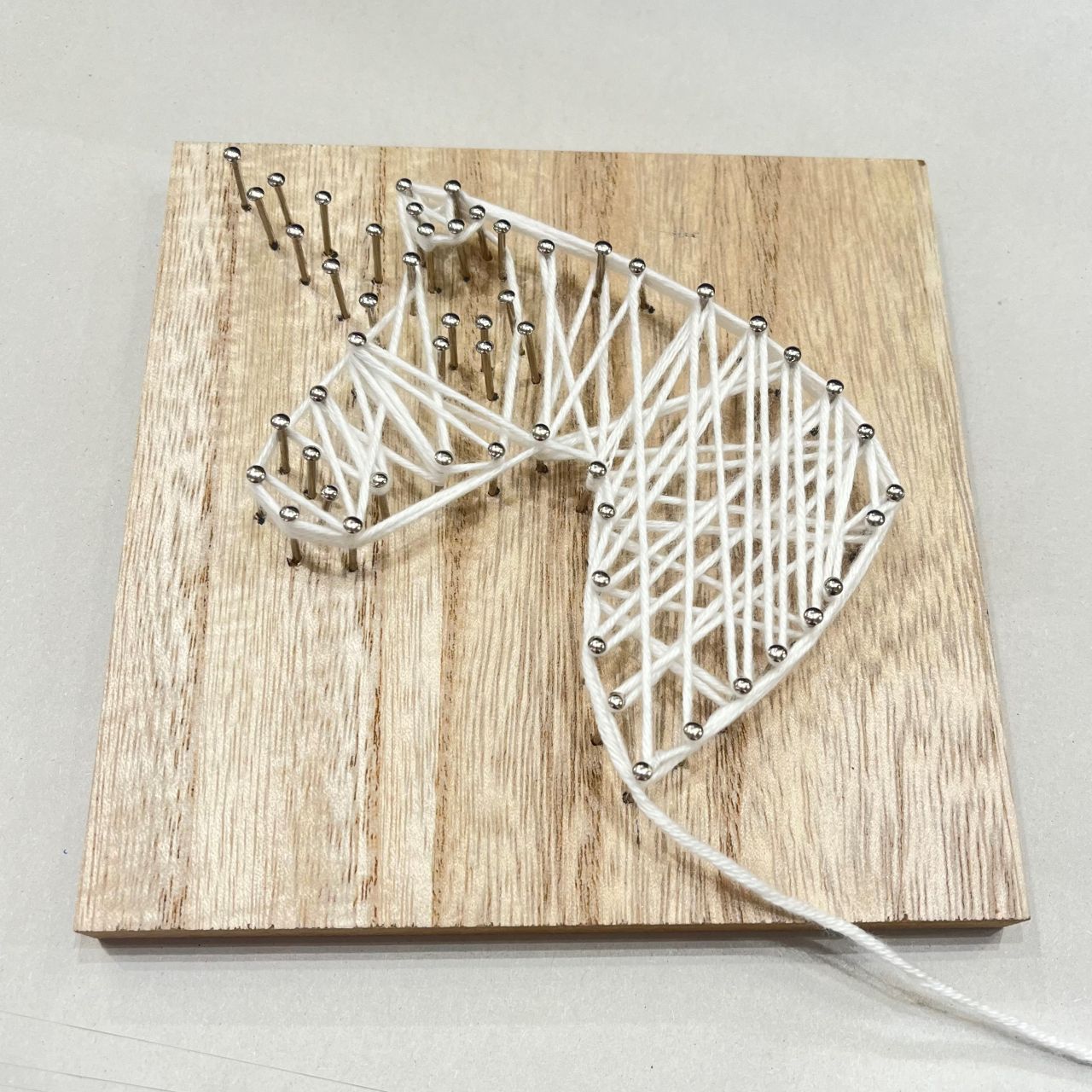 ③最初の釘に引っかけてユニコーンのベースを作っていきます。