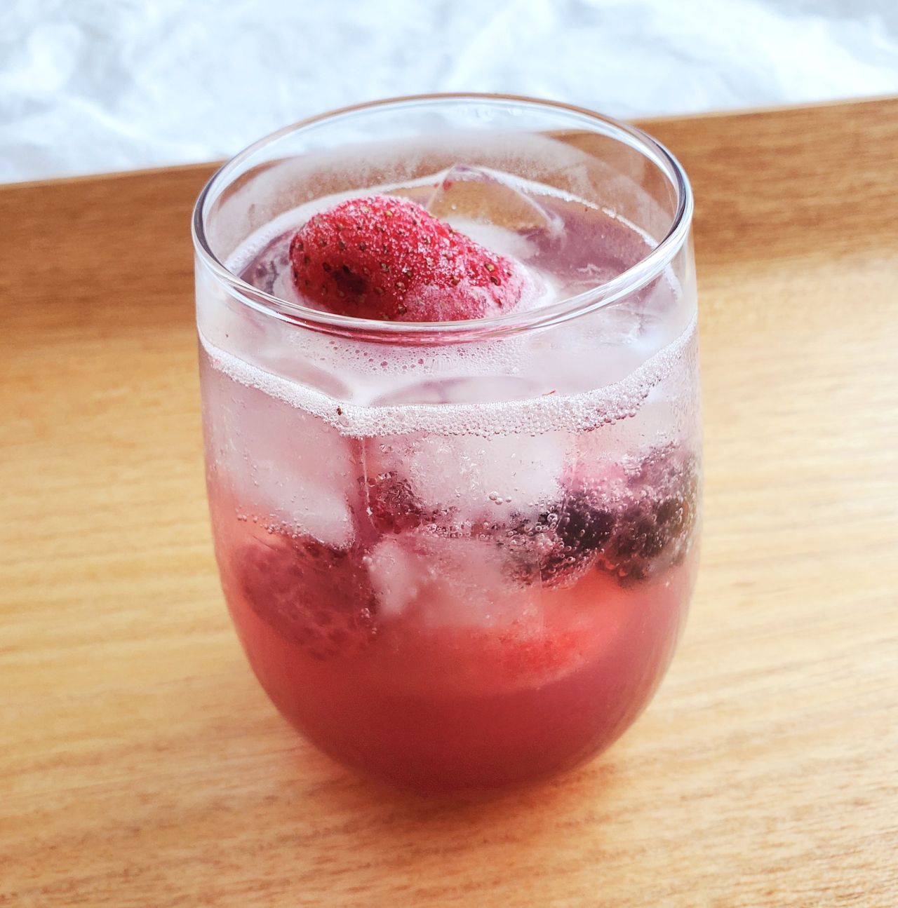 冷凍のベリーミックスを入れて見た目も食感も楽しめるようにしてみました!