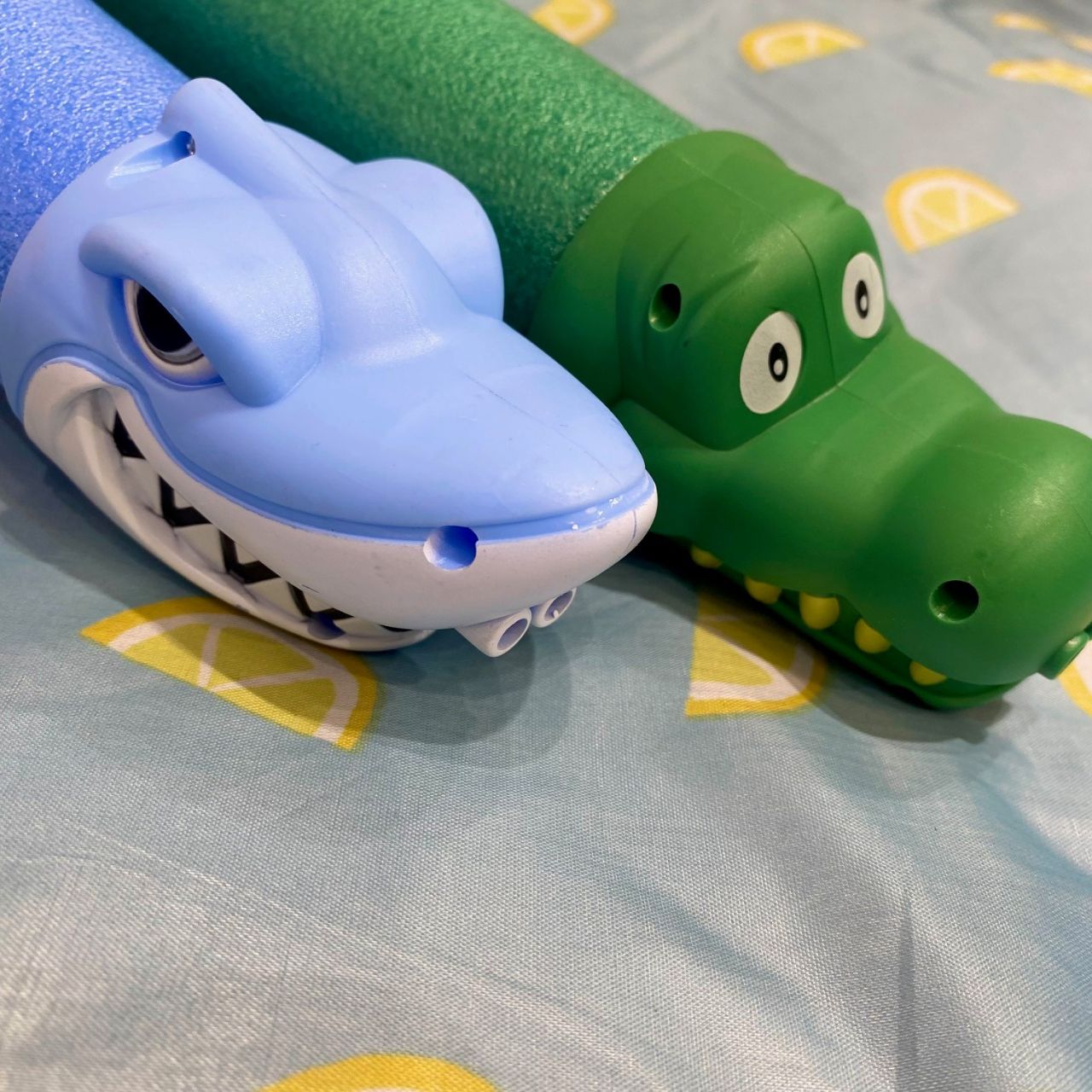 迫力満点!サメとちょっとおまぬけ?顔のワニです