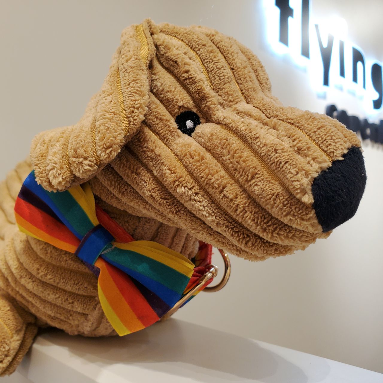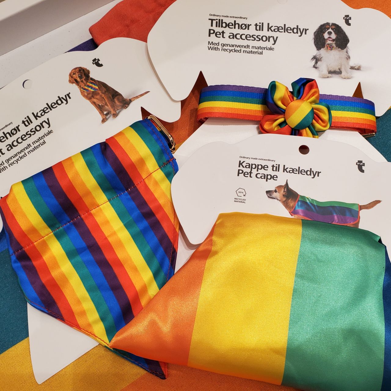 鮮やかなレインボーカラーの首輪とケープ