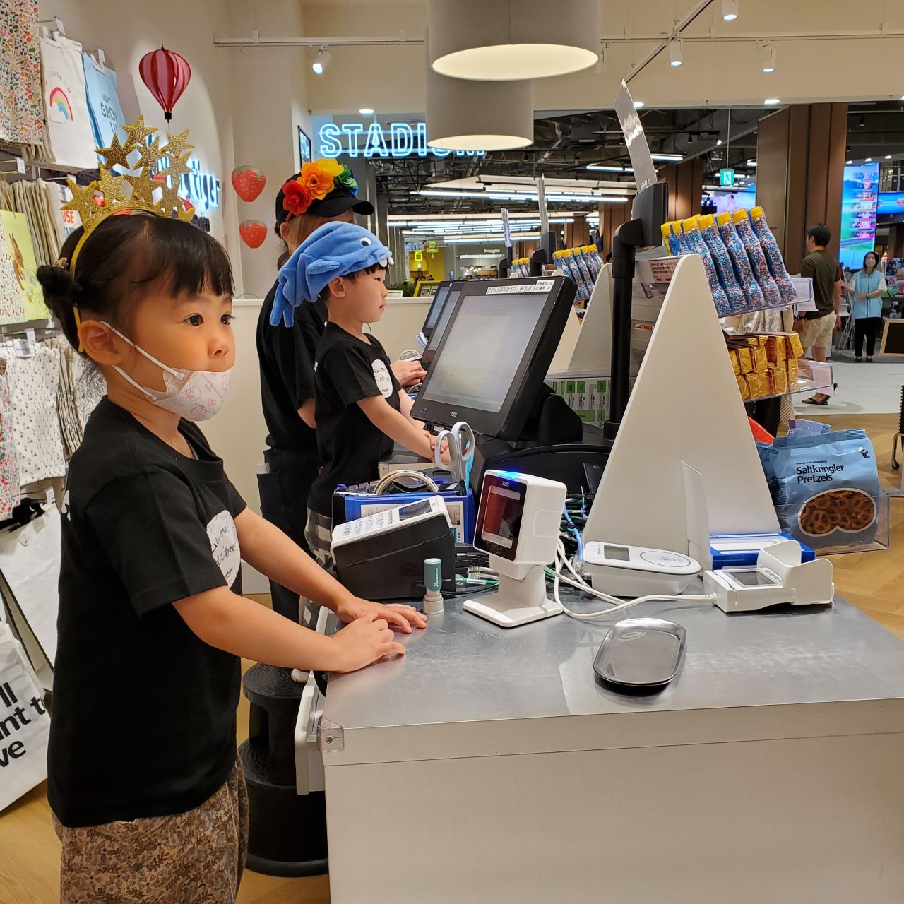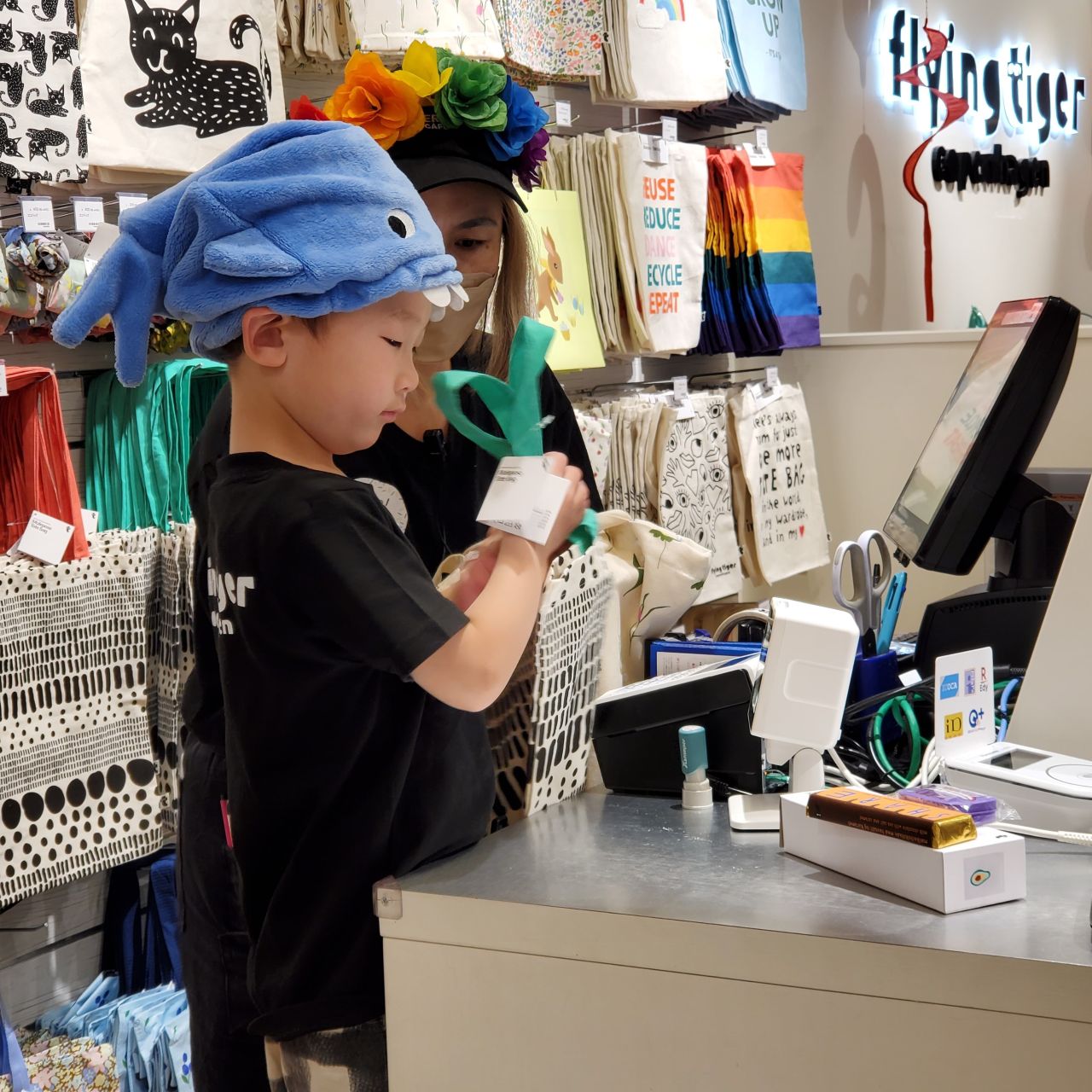 その後袋に詰めたり、お釣りをお返しするところも挑戦してもらいました!
