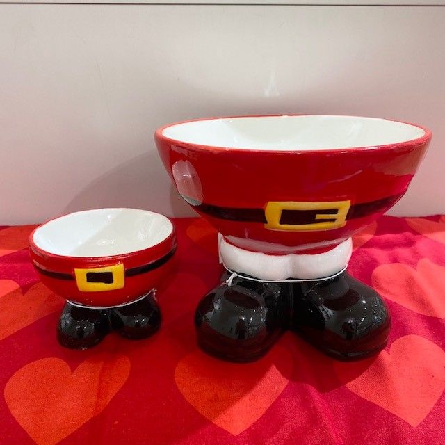 こちらはサンタさんのキュートな足がポイントのサービングボウルです
