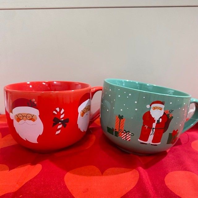 赤いマグのサンタさんはバラエティ豊かな表情を浮かべています