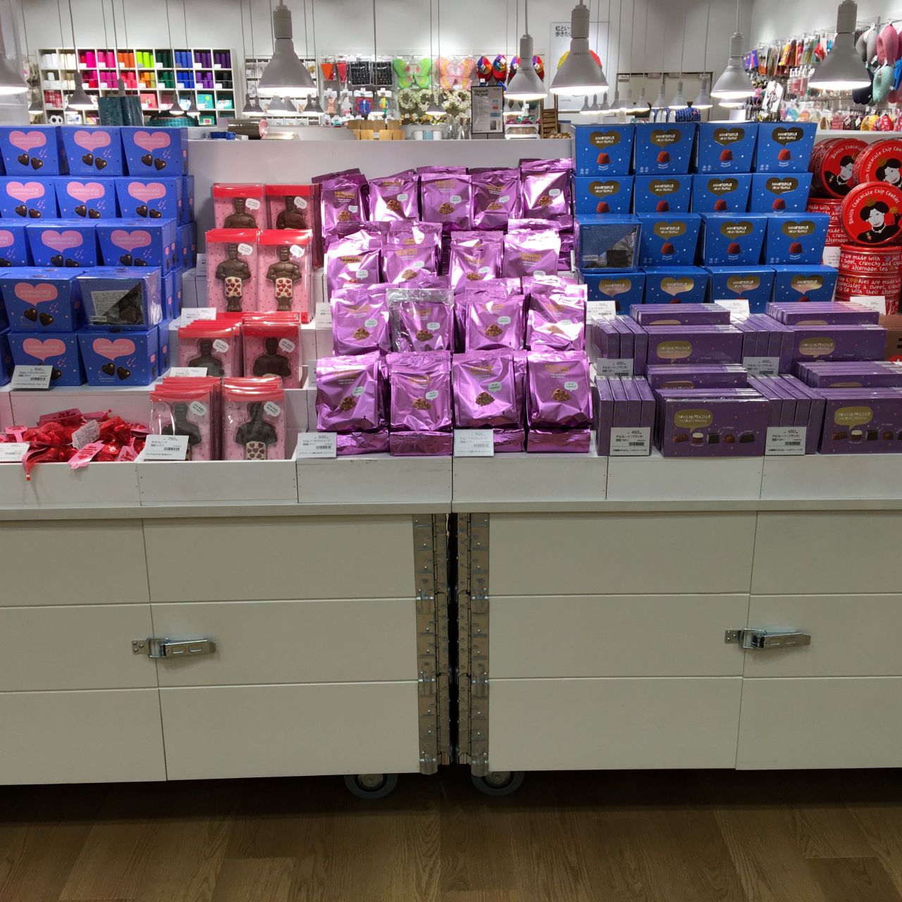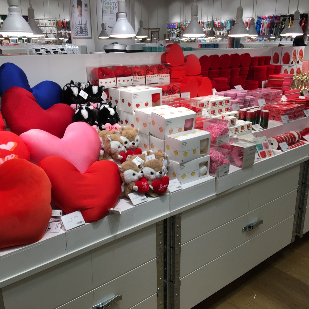 特設コーナーでは、赤やピンクのハートデザインのアイテムをたくさん取り揃えました!