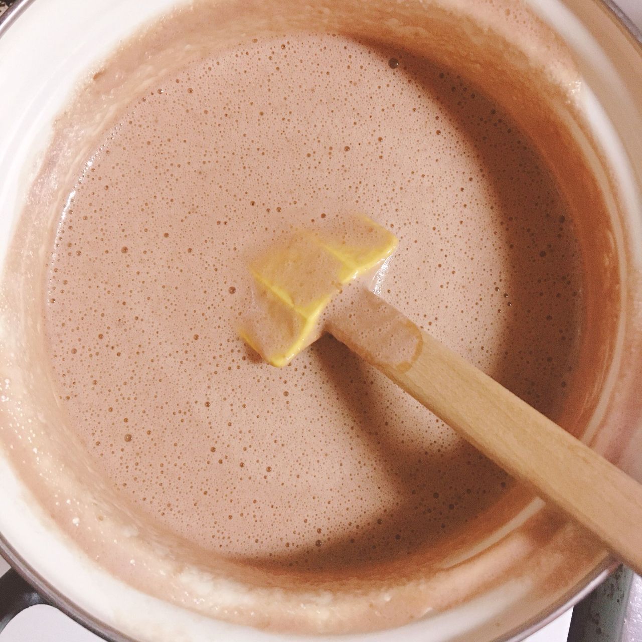 ①小鍋に牛乳、板チョコ、マシュマロを入れて