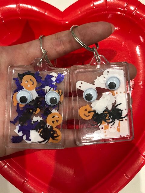 キーリングの中にコンフェッティを入れて、その中にシールをはるだけなんです!!