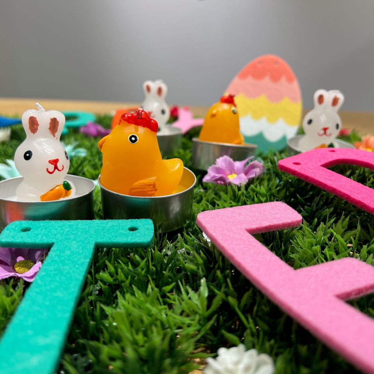 3個セットになっているチキンとウサギのキャンドルで