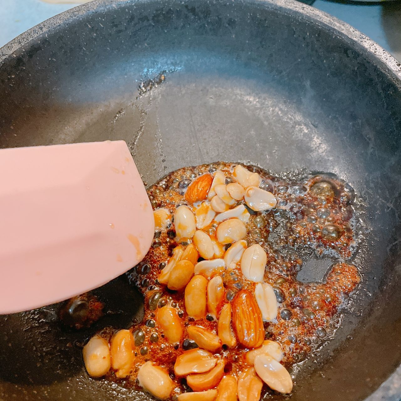 グミと炒めたナッツを乗せて、もう一度オーブンで焼きます。3~5分