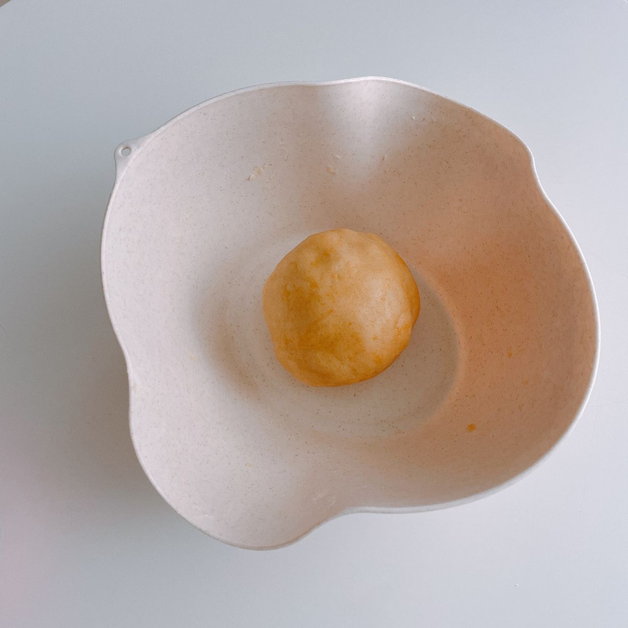 ②卵黄を入れて混ぜ、クッキーミックスを加えて切るように混ぜます。