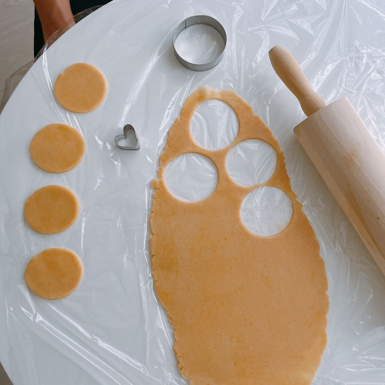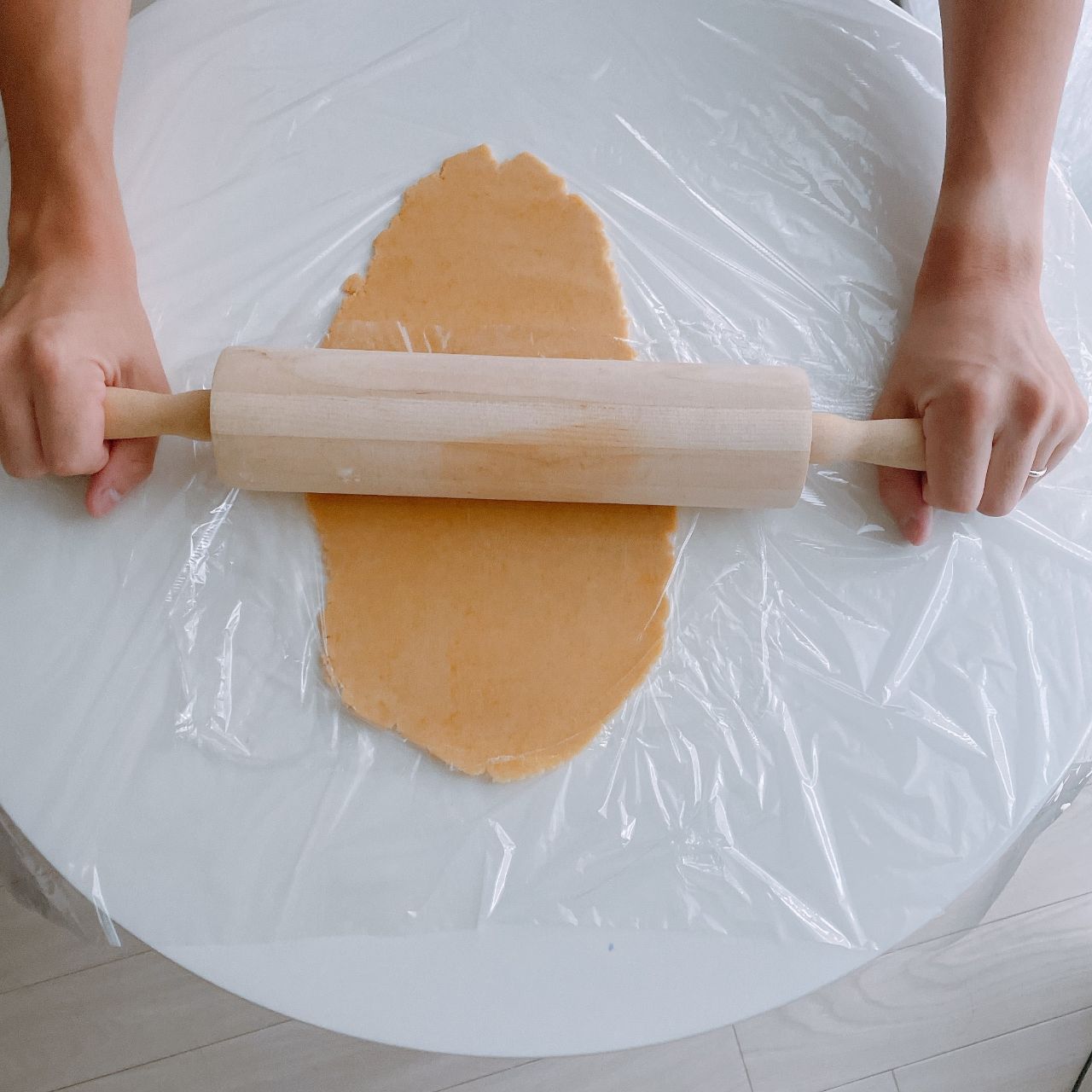 一つ目のプレーンは、めん棒で伸ばし型抜きをします。
