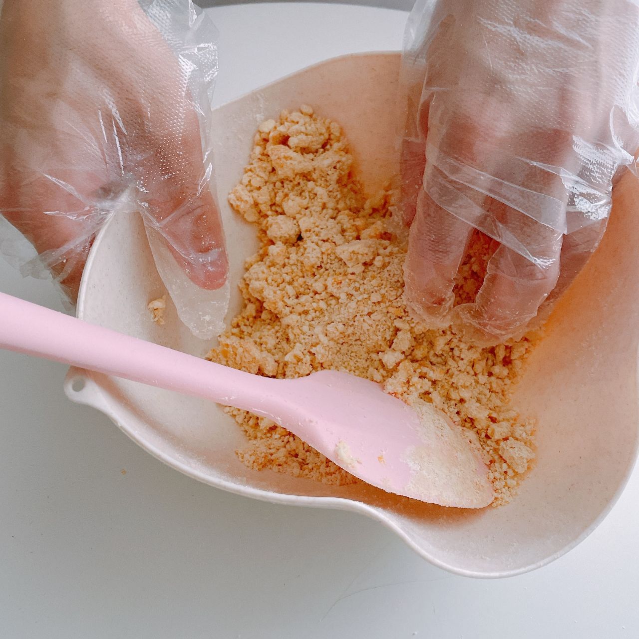 ③そぼろ状になったら、手で生地を軽くこねてまとめます。