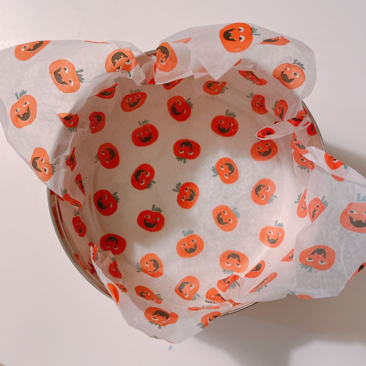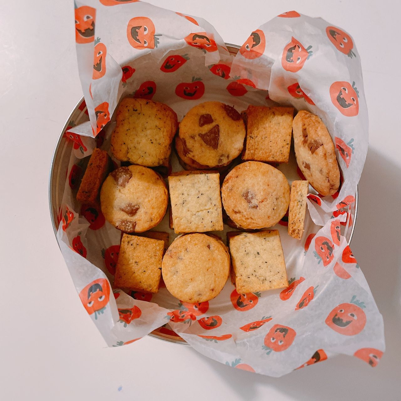⑬クッキー缶にワックスペーパーを敷き、クッキーを順番に詰めます。
