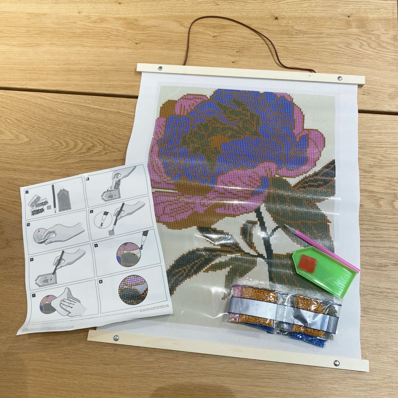 ダイアモンドビーズを貼っていき完成させるアートです。