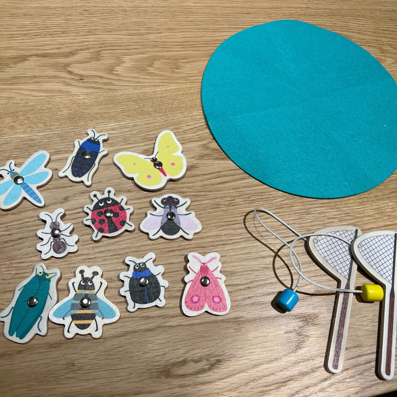 10種類の虫に2つの虫とりあみと緑のマットがセットになってます!