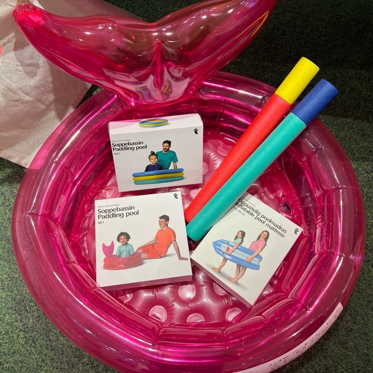 ピンクのプールにかわいい尾びれがついてる人気の商品です!