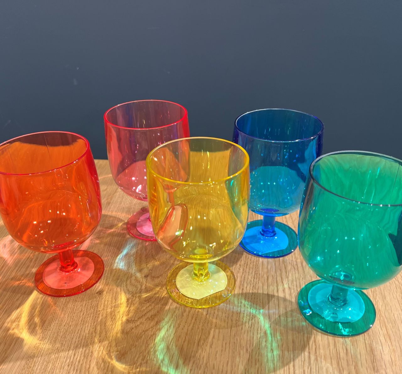 5色カラーのワイングラスで好きな色を使うのも良し推しの色にしても◎!