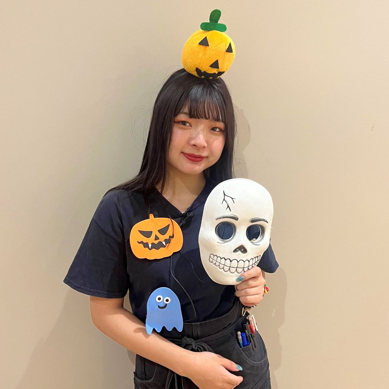 王道のパンプキンカチューシャに暗闇で光るマスクコーデ☆
