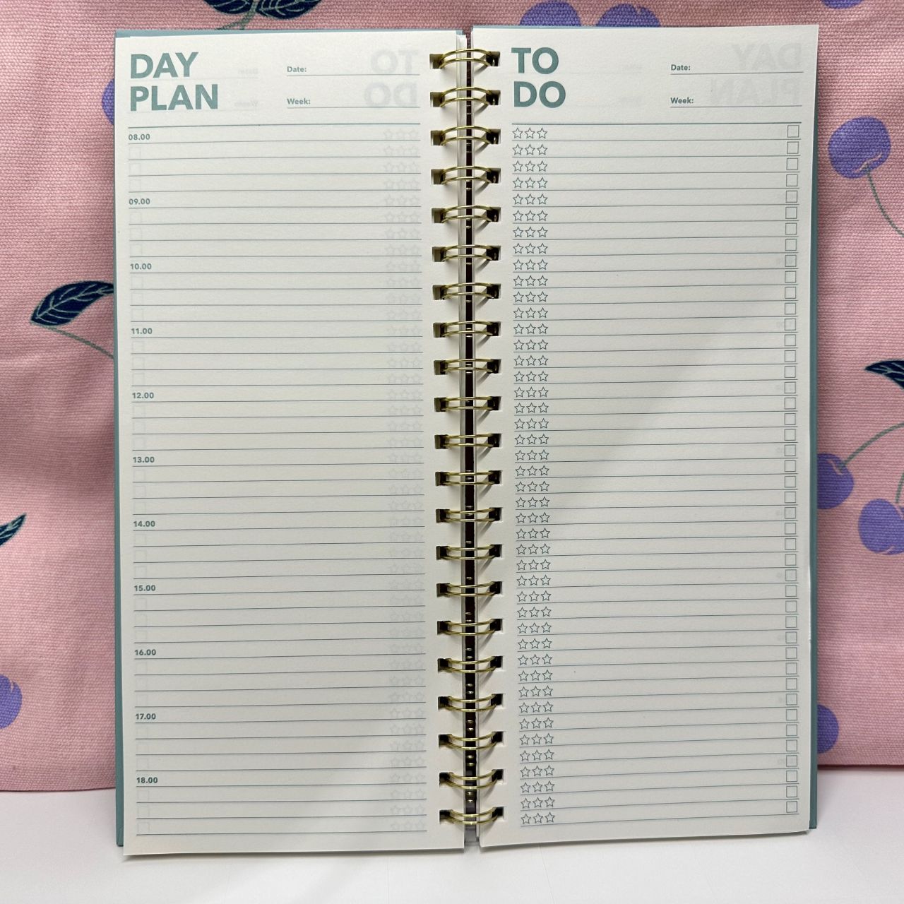 左のページは時間別に一日の予定を書き込めて、右のページはTODOリスト(やることリスト)になっています!