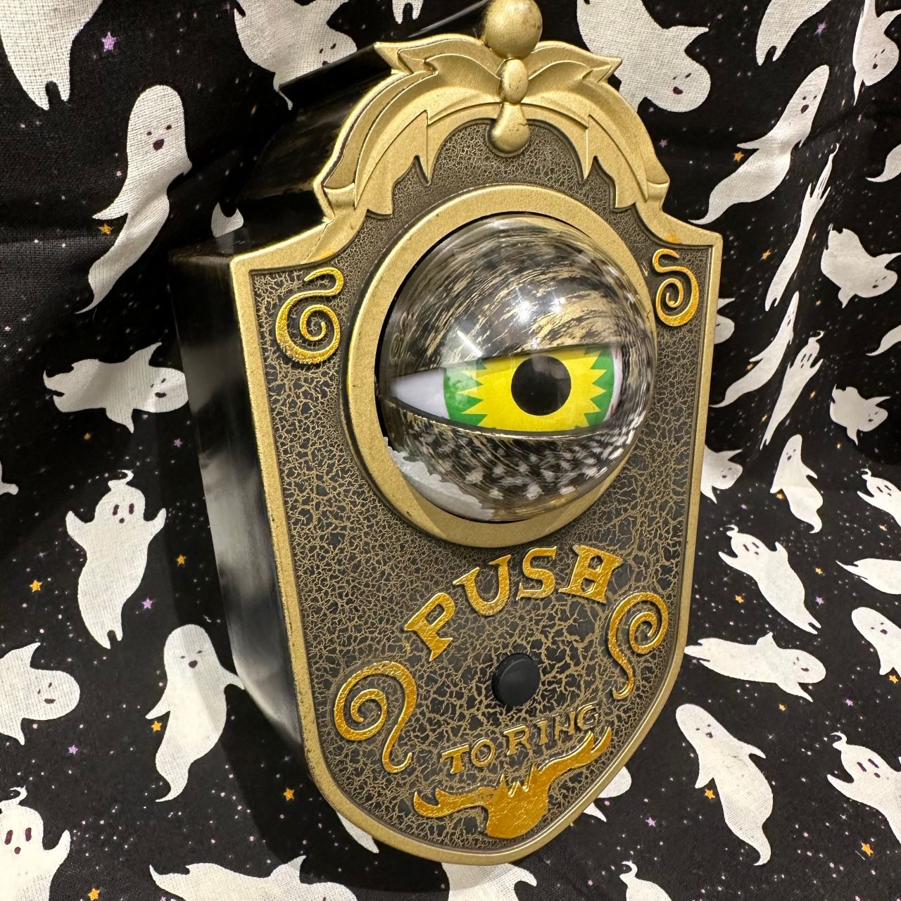 一見ただの古いドアベルですが、ボタンを押すと「ピンポーン」不気味な目玉がギョロリ。あなたを見に来ます。