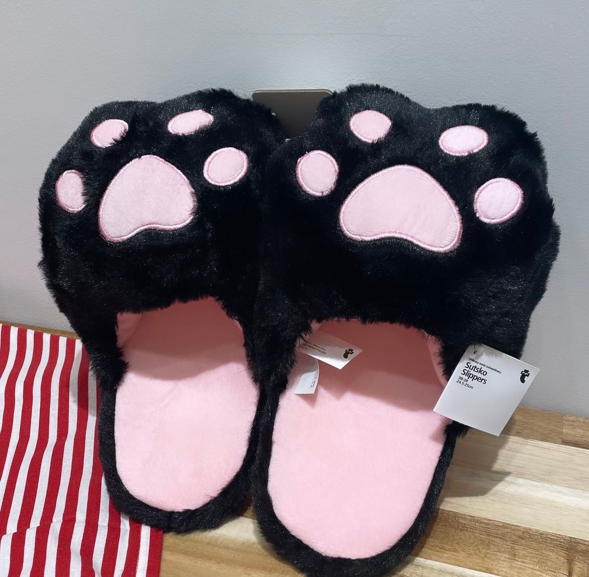 ピンクと黒のふわふわネコちゃんスリッパ︎︎︎︎❤︎