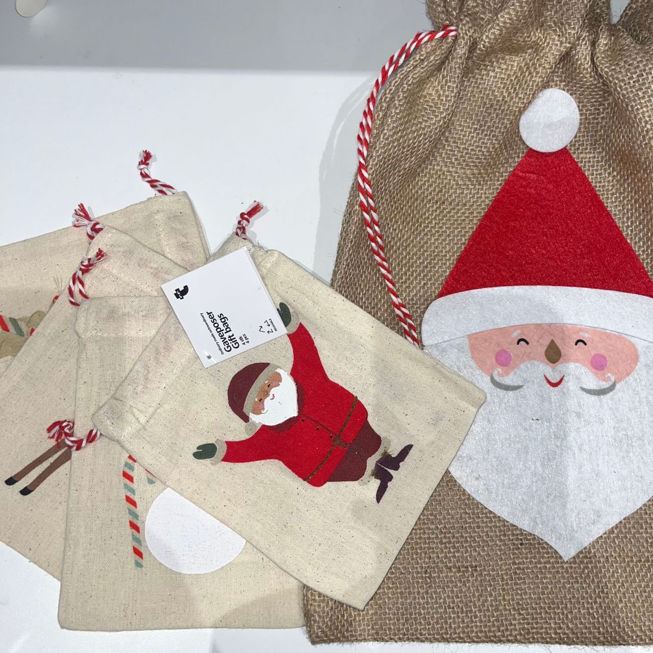 右のギフトバッグは、フェルト素材のサンタさんが付いています!