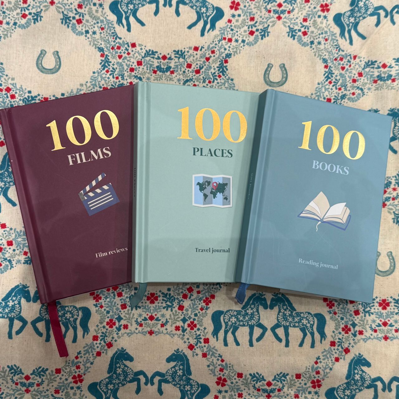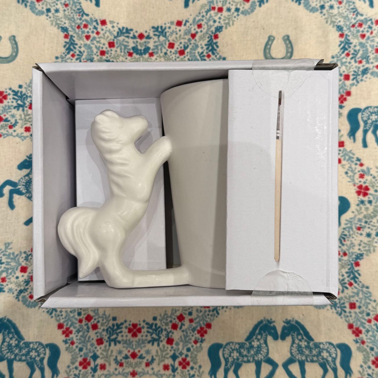 落ち着きのあるブルーを基調に、上品な馬の絵柄が描かれています。