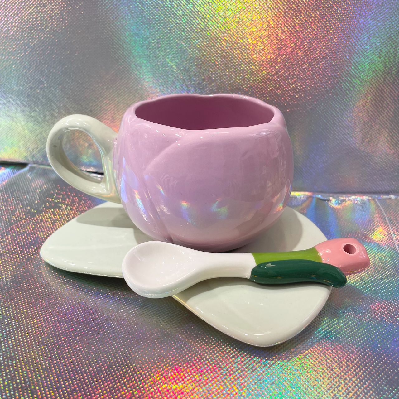 フラワーマグ&ソーサー ¥1,000(税込¥1,100)