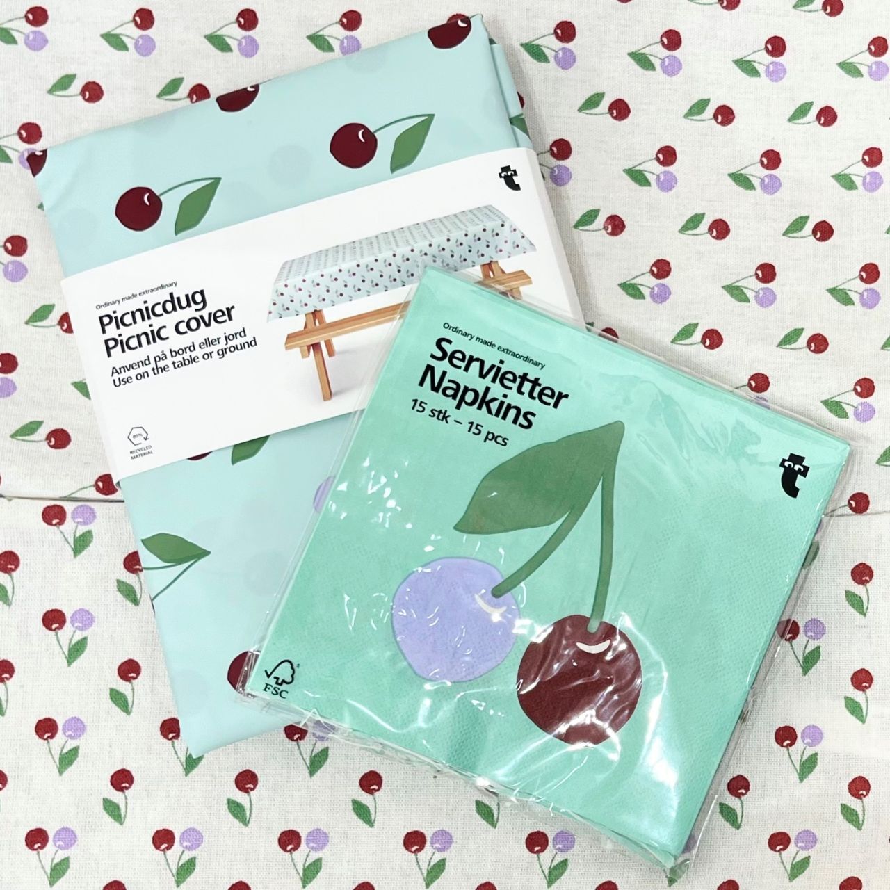 この総柄のさくらんぼがかわいいテーブルクロス、レジャーシートとしてもご利用いただけます!