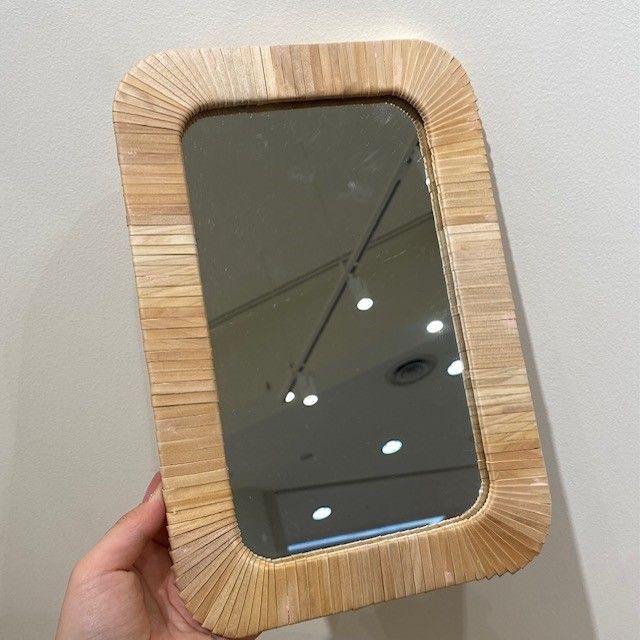 温かみのあるウッドフレームのミラー。