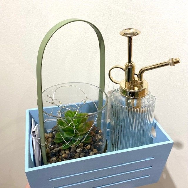 やさしいブルーカラーのウッドボックス。︎