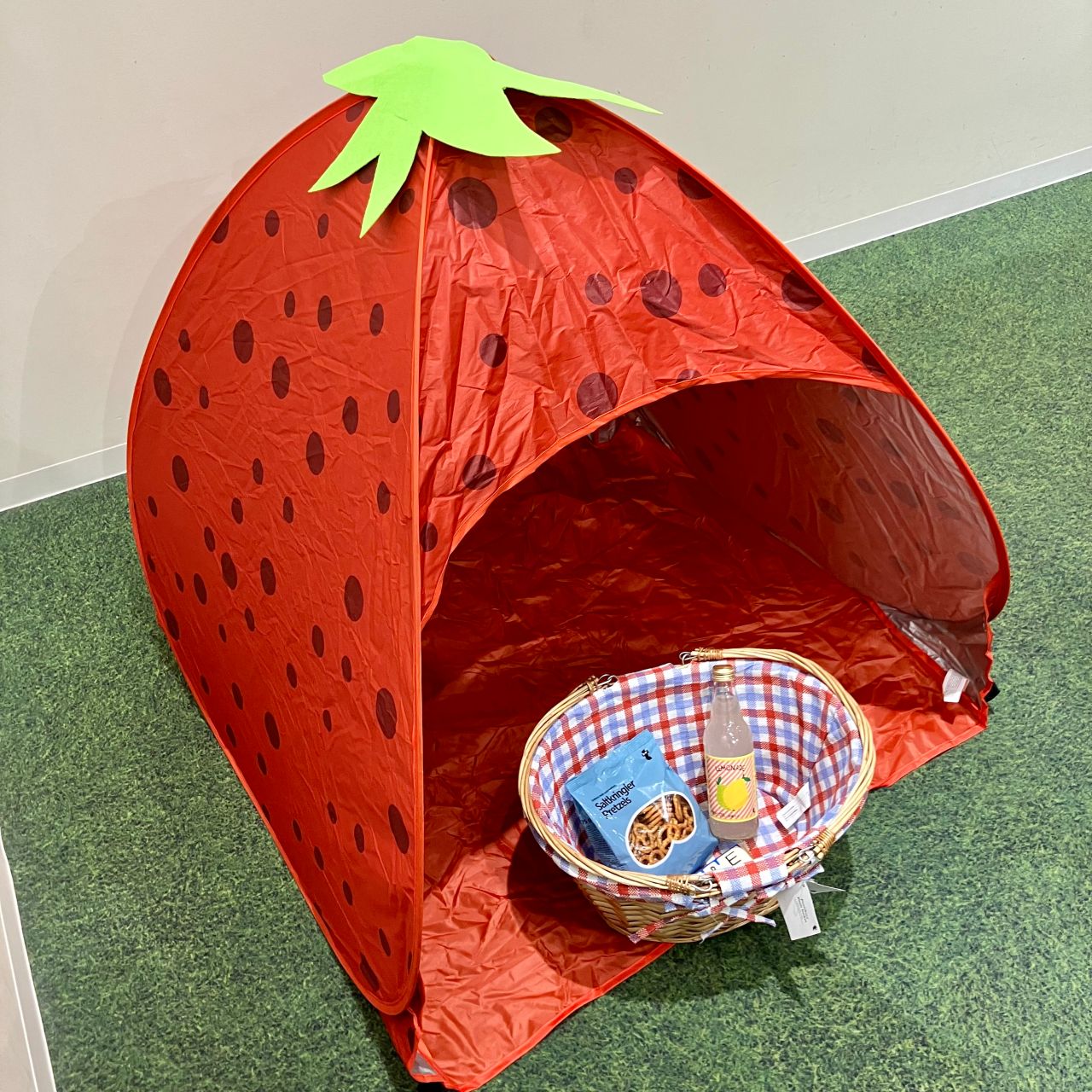 ころんとしたフォルムがたまらない、まっかないちごのテント。