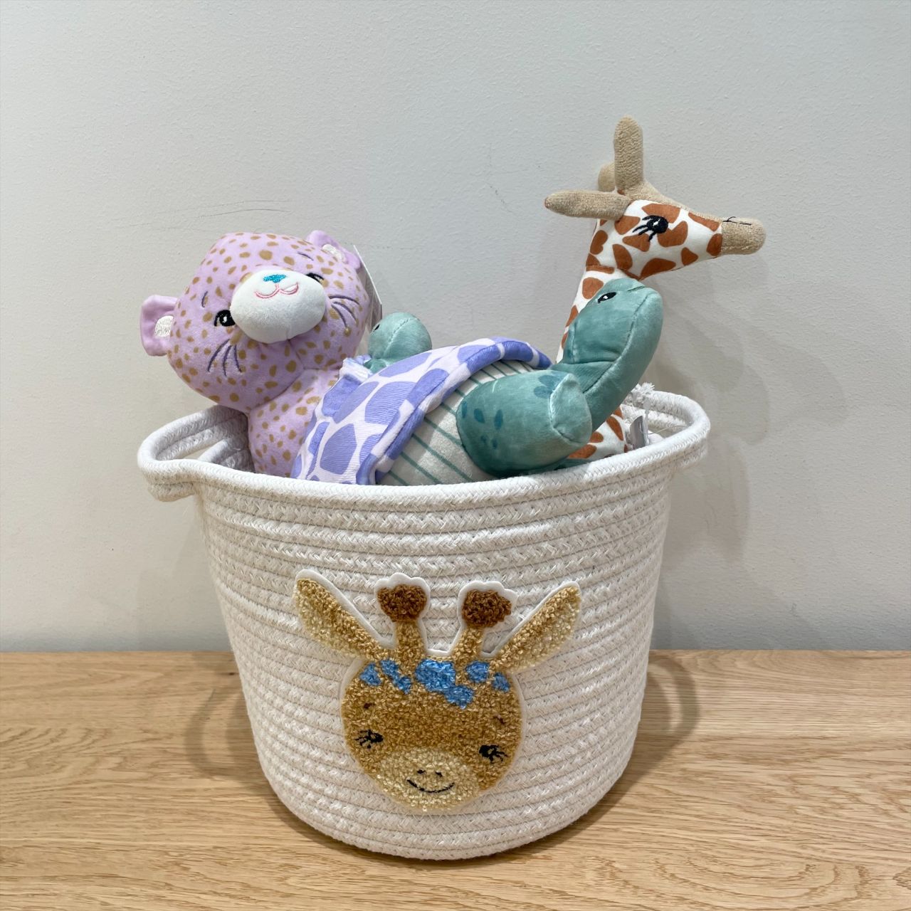 シンプルな白いバスケットかと思いきや、ワンポイントでふわふわなキリンさんを発見しました!♥