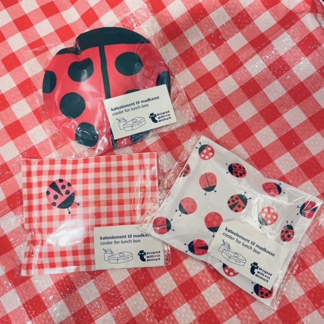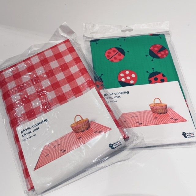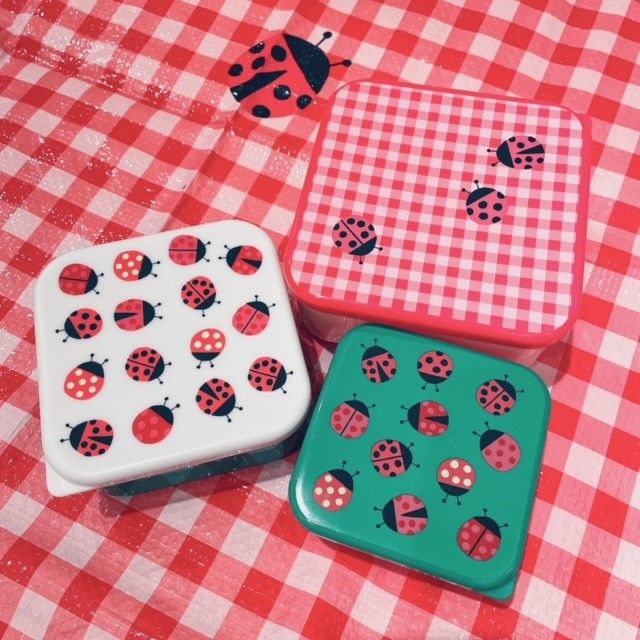 左側の赤いチェックのレジャーシートにはてんとう虫が数匹、